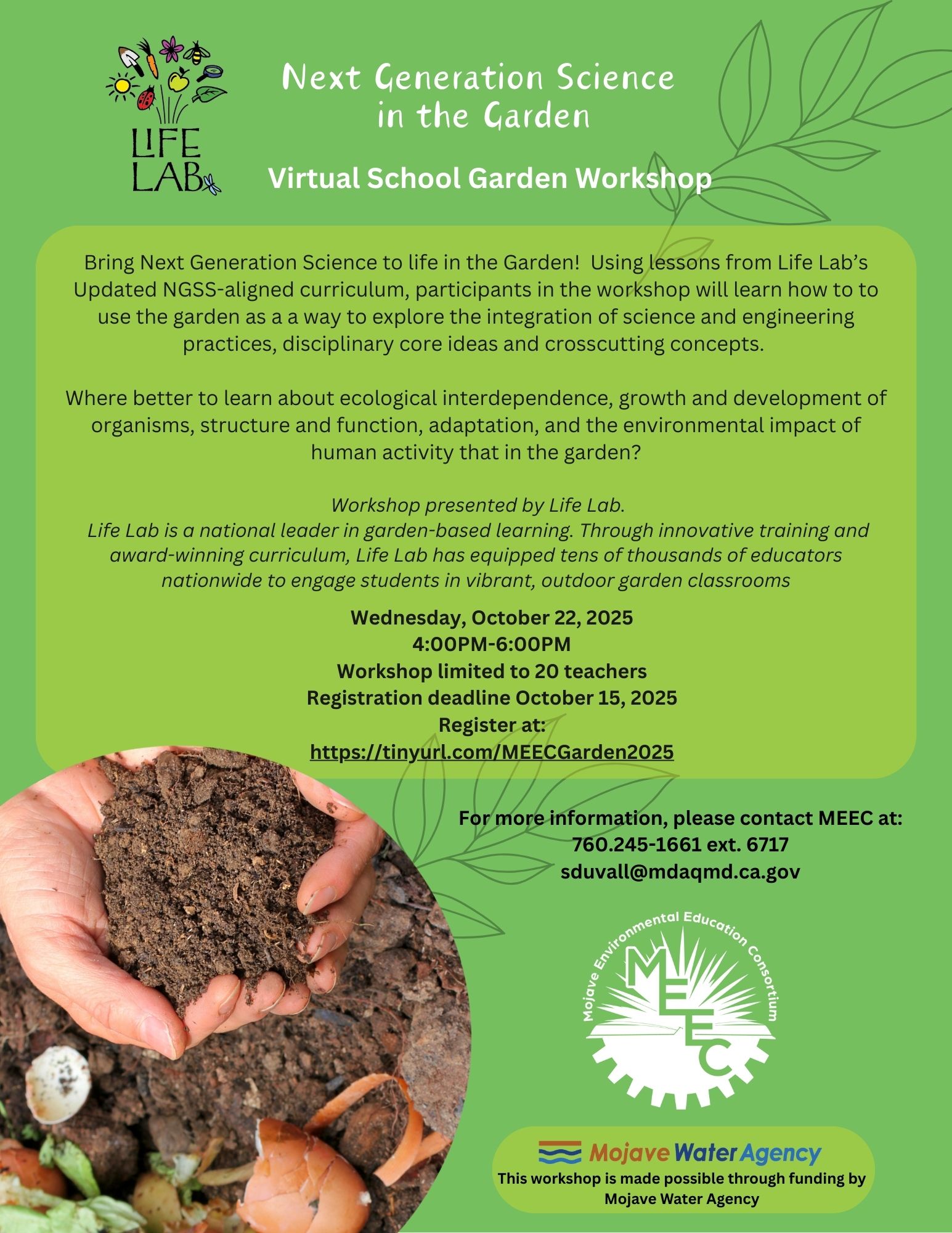 We’re excited to invite your school to participate in the 2025-2026 Outstanding Environmental Science Project Awards Program! This program recognizes K-12 students in the High Desert portion of San Bernardino County, Blythe, and Antelope Valley who create outstanding environmentally-themed science fair projects. Awards: Important Info: Don’t miss this chance to celebrate your students’ achievements! Register […]